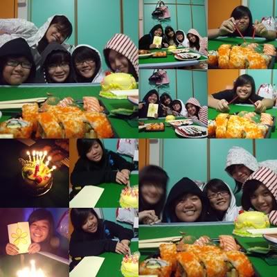 thanks for the sushis, cake, card and roast chicken!